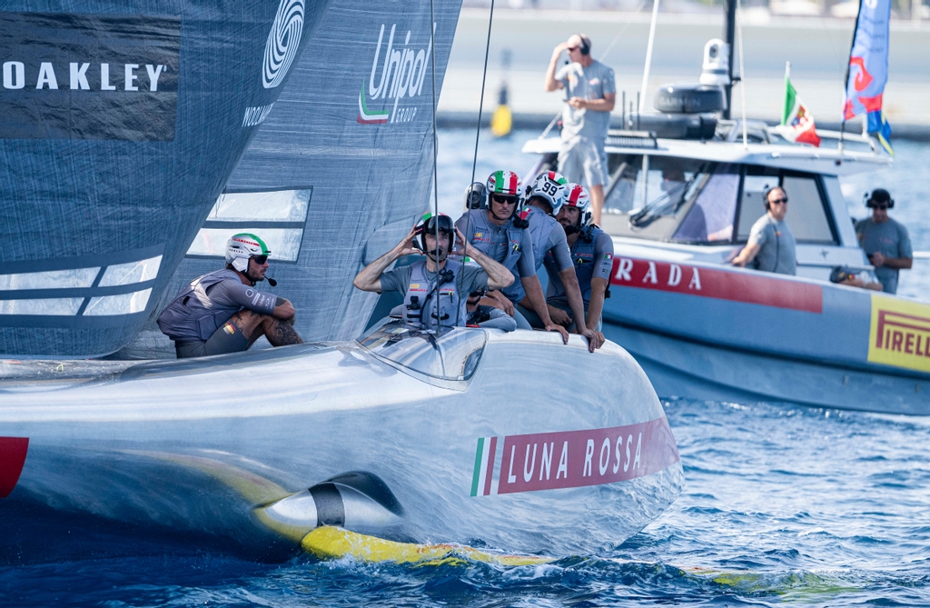 Luna Rossa's crew today featured Jimmy Spithill and Francesco Bruni at the helm, with Umberto Molineris and Andrea Tesei as trimmers. The cyclors were Enrico Voltolini, Bruno Rosetti, Cesare Gabbia and Emanuele Liuzzi.