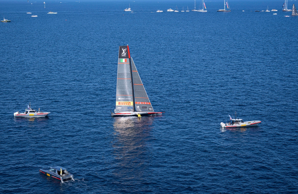 The breeze gradually faded on the racecourse until it disappeared completely just before the start of the match between Luna Rossa and NYYC American Magic. At that point the race committee was unable to give the start and Match #7 was postponed to the following race day.